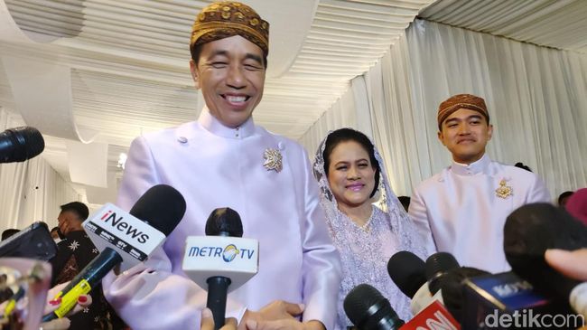 "Jadi malam hari ini kami datang ke Jogja untuk midodareni, juga melakukan serah-serahan dan juga tilik nitik," kata Jokowi kepada wartawan usai prosesi midodareni, Jumat (9/12/2022).