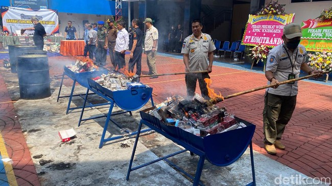 Kantor Bea Cukai Jogja memusnahkan barang ilegal senilai ratusan juta rupiah. Barang ilegal itu disita pada periode operasi dari Desember 2021 hingga September 2022.