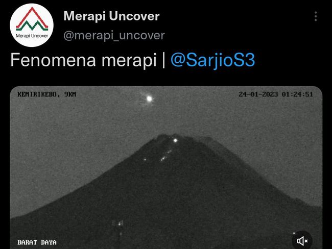 Video yang merekam fenomena itu dibagikan akun Twitter @merapi_uncover. Dalam unggahan video itu dijelaskan peristiwa itu terjadi pada pukul 01.24.25 WIB, Selasa (24/1).