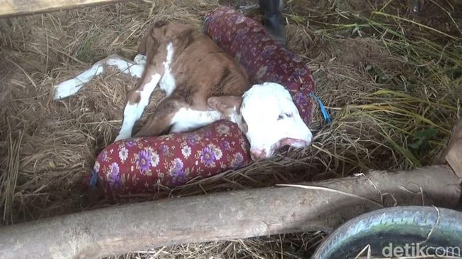 "Tapi sapi ini belum bisa berdiri sehingga untuk minum susu susah. Karena itu diberi susu setiap dua jam sekali pakai dot," ucapnya.