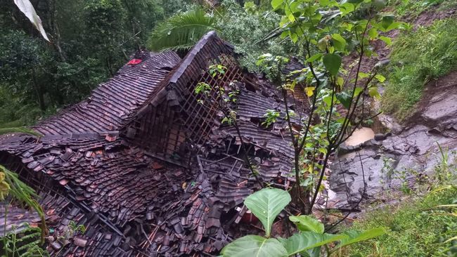 Benar saja, tak lama kemudian rumah jenis limasan itu roboh total. Subarno menyebut robohnya rumah akibat terdorong longsoran.
