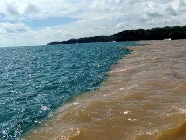 Surisdiyanto berujar, saat itu air laut di sisi selatan berwarna biru. Sedangkan di sisi utara tampak air berwarna cokelat sehingga membuat perairan seperti 'terbelah'.