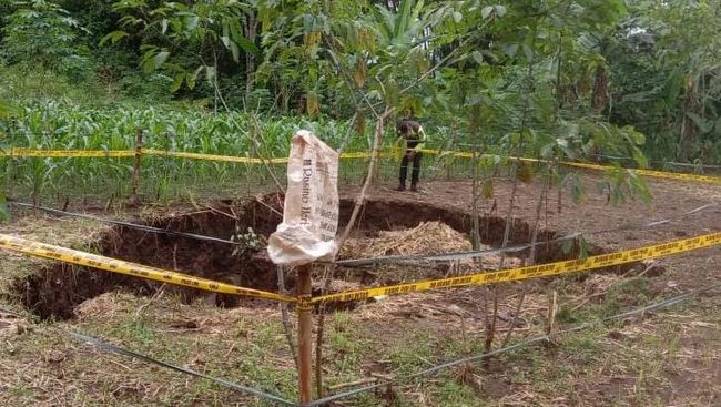 "Hari Minggu (26/2) itu sudah dipasang garis polisi. Dari BPBD juga sudah ke sini dan bilang kalau itu dugaannya sinkhole," ujarnya.