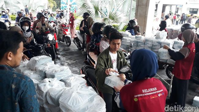 Universitas Muhammadiyah Yogyakarta (UMY) membagikan 5 ribu takjil kepada mahasiswanya selama bulan Ramadan. Pembagian takjil gratis ini dilakukan secara drive thru.