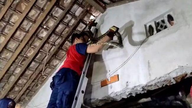 "Ketika ditengok ke atas ternyata ada ular yang sangat besar sembunyi di atap rumah," katanya kepada detikJateng, Kamis (6/4/2023) malam.