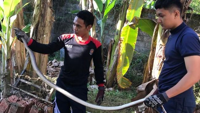 "Awalnya Pak agung sedang menjemur pakaian lalu melihat ular di pekarangan rumah. Karena ukuran ular yang lumayan besar Pak Agung tidak berani menangkapnya," kata Irawan.
