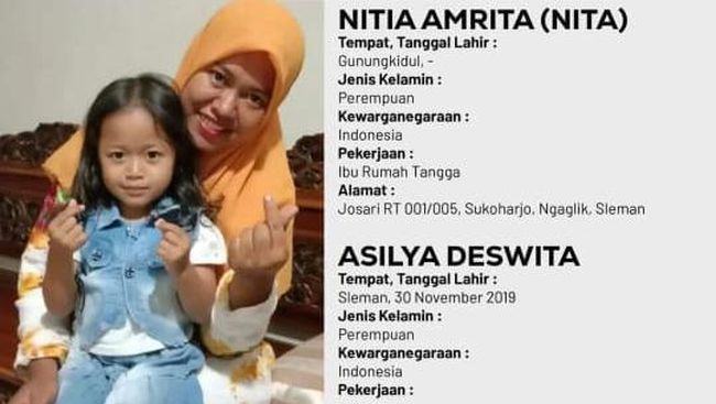 Seorang wanita asal Kalurahan Sukoharjo, Kapanewon Ngaglik, Sleman dilaporkan oleh keluarganya pergi dari rumah. Dia juga membawa anaknya yang baru berumur 4 tahun.