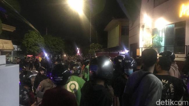 Aparat kepolisian juga masih berjaga dan menutup jalan Wirogunan menggunakan kendaraan barakuda.