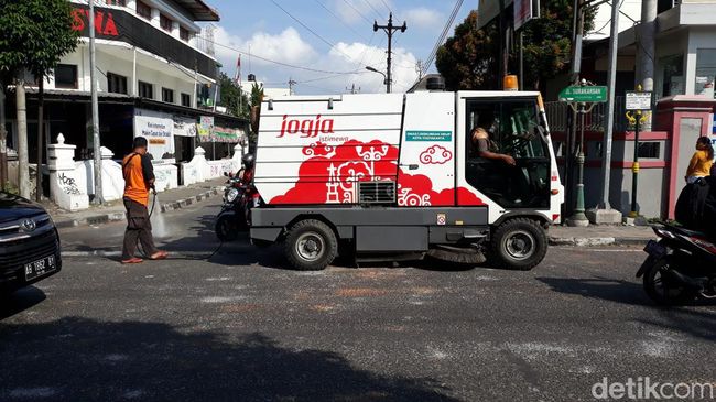 Sekitar pukul 09.00 WIB, mobil pembersih jalan milik Pemkot Jogja mulai melintas dari selatan untuk membersihkan jalan tersebut. Selain itu, beberapa petugas yang mengenakan pakaian oranye sibuk menyapu Jalan Tamsis.