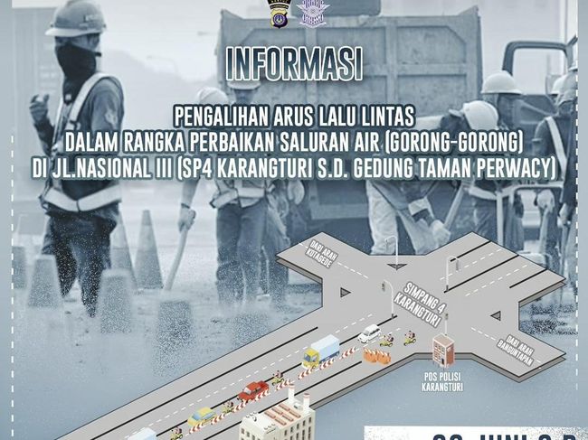 Jeffry memerinci mulai 30 Juni hingga 6 Juli 2023, kendaraan roda empat dan motor dialihkan menggunakan jalur cepat. Tepatnya mulai dari Simpang 4 Karangturi.