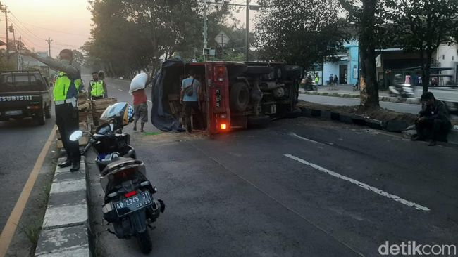 "Tadi kendaraan truk bermuatan dari arah timur dan tiba-tiba ban belakang sebelah kiri pecah. Karena itu, truk langsung oleng banting ke kanan menabrak ke divider (pembatas jalur) tengah hingga terguling," katanya kepada wartawan di Kabupaten Bantul, Senin (10/7/2023).