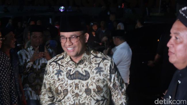 Pantauan detikJateng, Anies datang pukul 22.25 WIB. Mengenakan batik lengan panjang, celana panjang dan peci warna hitam, Anies langsung menuju lokasi pagelaran wayang kulit dari sisi selatan panggung.