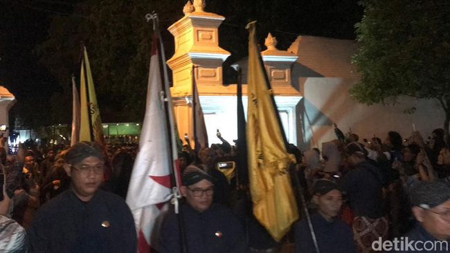 Pantauan detikJateng, para abdi dalem mulai berjalan tepat setelah kentongan besi dipukul sebanyak 12 kali yang menandakan tepat pukul 00.00 WIB. Ratusan masyarakat nampak memadati area Keraton hingga di depan gerbang sisi barat.