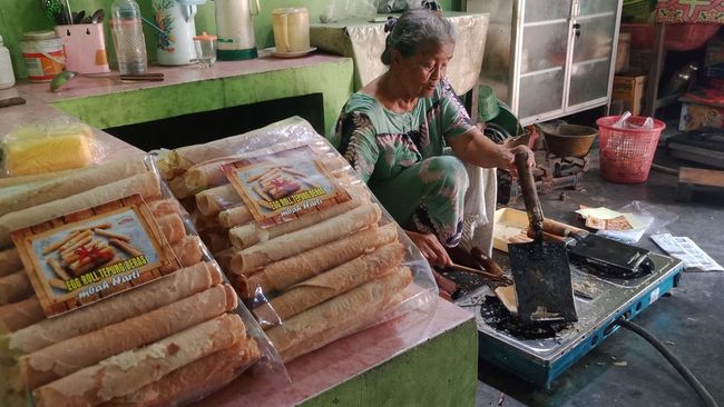 "Satu plastik isinya setengah kilogram dengan harga Rp 35.000 saja. Di sini (Sidowayah) kini tinggal saya sendiri yang buat, kalau egg roll ada beberapa," tambah Suharti.