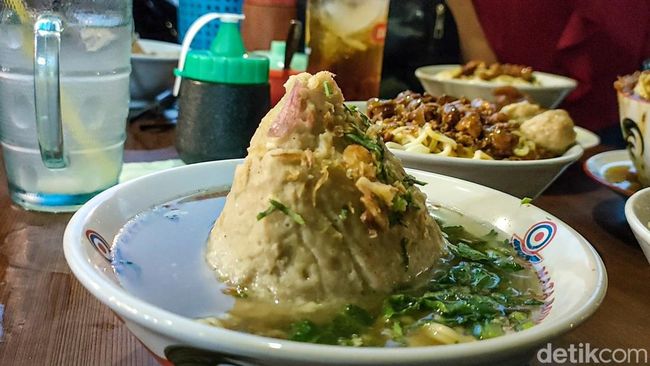 Bentuk bakso tersebut memang mirip dengan gunung atau tumpeng. Ukurannya cukup besar dan memenuhi mangkuk yang digunakan untuk penyajian.
