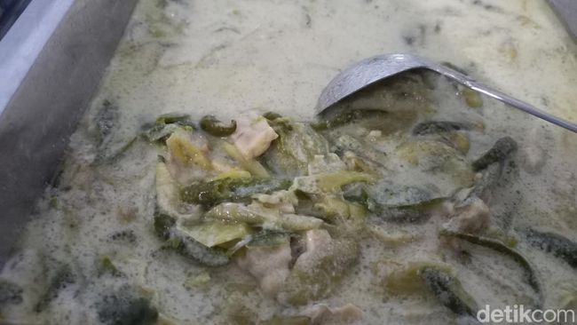 "Kebanyakan pakai cabai hijau yang keriting, kalau merah kan buat sambal goreng. Kalau di sini terkenalnya lombok cengar yang buahnya warna hijau posisi buah di atas. Kemudian kuah jangan lombok ijo itu santan yang teksturnya nyemek atau sedikit kental," ujar dia.