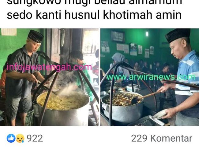 Postingan tersebut menyertakan dua foto saat Tri Sumarno membakar sate. Diunggah delapan jam lalu, kabar itu dikomentari 230 ucapan bela sungkawa.