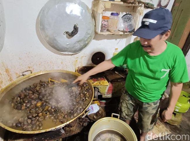 Untuk menghasilkan olahan keong dengan cita rasa pedas, manis, gurih prosesnya cukup panjang. Chamlani memulai aktivitas memasak keong sejak pukul 05.00 WIB tiap harinya.