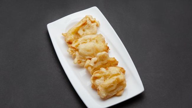 - Masukkan ke dalam adonan pelapis, goreng dengan minyak banyak.