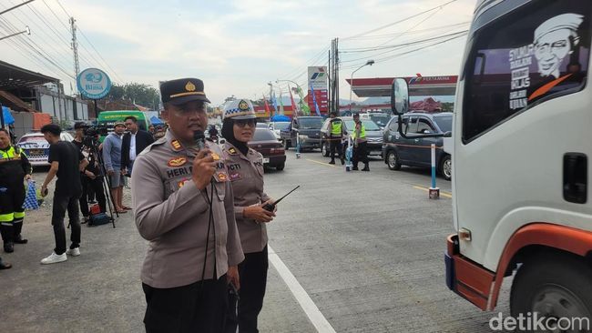 "Tempel, tempel, tempel. Silakan tetap bergerak, tambah kecepatan apabila jarak kendaraan terlalu panjang. Tetap bergerak roda berputar. Hati-hati jangan lupa nyalakan lampu utama kendaraan anda. Sepeda motor silakan bergerak dengan menggunakan lajur di sebelah kiri," seru Kasub Satgas Rekayasa Operasi Ketupat Candi Polresta Banyumas, Iptu Octi Widiyasih, Minggu (6/4/2025).