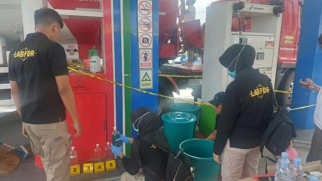 Tim Bidang Laboratorium Forensik (Bidlabfor) Polda Jateng dan Polres Klaten melakukan olah tempat kejadian perkara (TKP) BBM Pertalite tercampur air di SPBU 44.574.29 Desa Wonosari, Kecamatan Trucuk. Mereka juga membawa lima botol berisi diduga BBM tercampur air untuk diperiksa lebih lanjut.