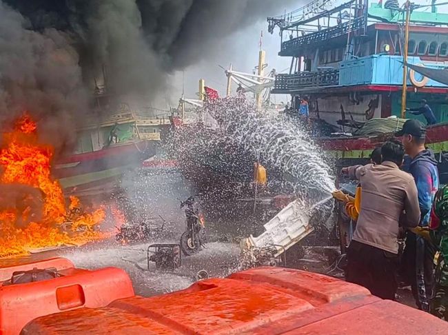 Tumpahan solar tersebut menyebabkan api menjalar dengan cepat. Imbasnya, membakar buritan kapal dan belasan unit sepeda motor milik nelayan yang berada di sekitar lokasi.