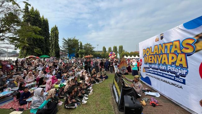 Polisi lalu lintas (Polantas) dari Satlantas Polres Purbalingga menggelar kegiatan bertajuk Polantas Menyapa Anak-anak dan Pelajar di Alun-alun Purbalingga, Sabtu (26/7/2025) pagi. Kegiatannya berupa sosialisasi tertib lalu lintas menghadirkan wayang dan badut dengan sasaran anak-anak.