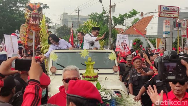 Terlihat ketua DPC PDIP Kota Semarang yang juga Bakal Calon Wakil Gubernur Jateng, Hendrar Prihadi atau Hendi, datang lebih dulu di kantor KPU Jateng. Kemudian rombongan paslon langsung menuju ruang pendaftaran.