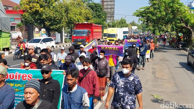 Sebelum berorasi di depan kantor Bawaslu Kendal, massa sempat menggelar long march dari depan GOR Bahurekso menuju kantor Bawaslu Kendal, Jalan Wali Gembyang, Kelurahan Ngilir, Kecamatan Kendal.