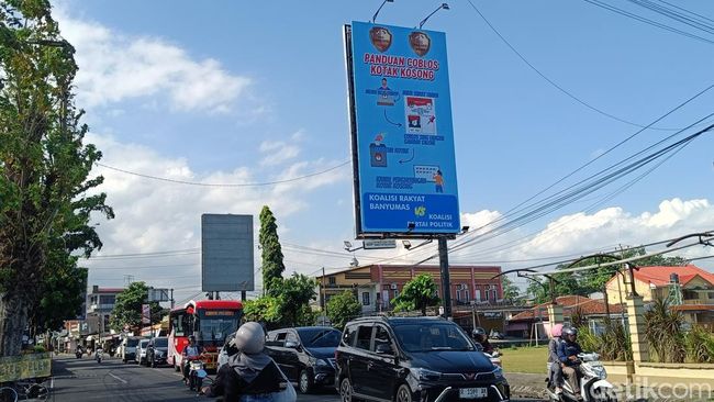 Baliho ajakan untuk mencoblos kolom kosong atau kotak kosong mulai bertebaran di Kabupaten Banyumas. Pantauan detikJateng baliho berukuran besar ini mengatasnamakan Koalisi Rakyat Banyumas.
