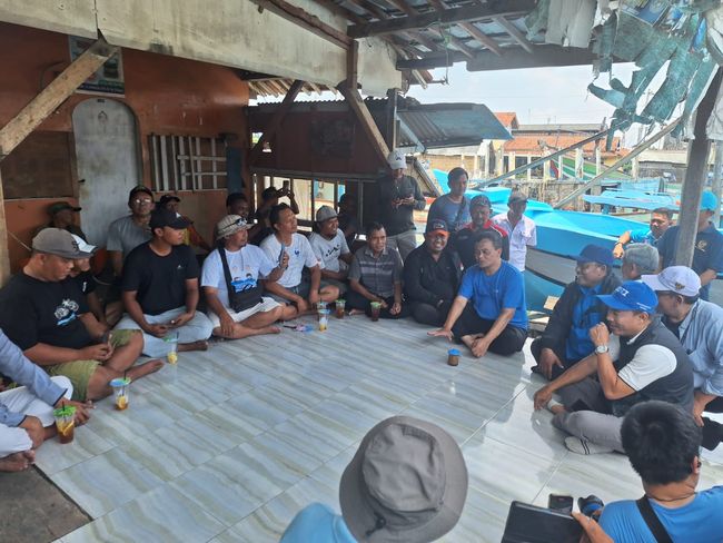 Pantauan detikcom di lokasi, Ahmad Luthfi tiba sekitar pukul 11.00 WIB. Sesampainya di lokasi, dirinya langsung ke sebuah warung makan untuk berbincang dengan para nelayan.