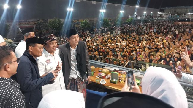 Calon Gubernur Jawa Tengah (Jateng) Ahmad Luthfi ikut pengajian bareng pendakwah milenial asal Blitar Muhammad Iqdam Kholid atau Gus Iqdam di Kalipepeland, Boyolali, Jawa Tengah, hari ini. Dalam kesempatan itu, sejumlah jamaah yang berasal dari berbagai daerah di Jateng menyampaikan harapannya ke Ahmad Luthfi.