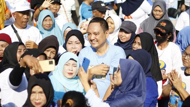 Calon Wali Kota Semarang nomor urut 2, Yoyok Sukawi, mengikuti gelaran senam bersama. Ia sontak jadi serbuan ribuan warga setempat yang berdesakan demi berfoto bersama Yoyok.