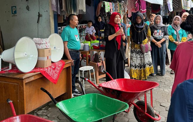 Hal tersebut diungkapkan Vivit saat memberikan sejumlah bantuan untuk pedagang seperti pengeras suara, gerobak pasir dan lainnya sebagai fasilitas pasar, Rabu (20/11/2024).