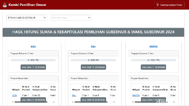 - Secara umum, masyarakat dapat mencermati Progres Dokumen C Hasil dan Progres Rekapitulasi masing-masing wilayah yang ada di Jawa Tengah.