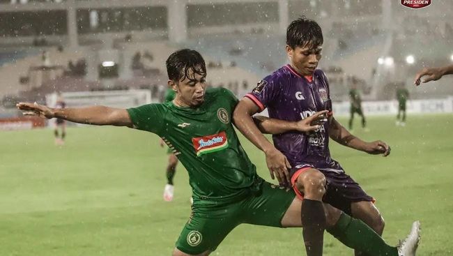 Di tengah pertandingan hujan turun mengguyur Manahan. Tempo pertandingan pun tak terlalu cepat.