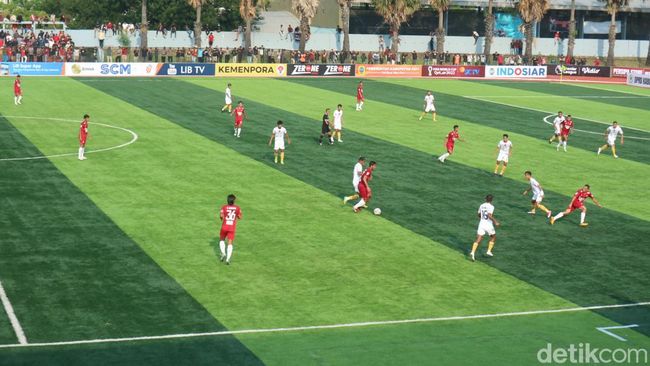 Tambahan waktu babak pertama dua menit. Hingga peluit ditiupkan skor babak pertama imbang 1-1.