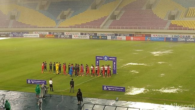 Dari pantauan detikJateng, hujan deras mengguyur kawasan Manahan sebelum laga dimulai. Nampak sejumlah genangan air muncul akibat hujan deras itu.
