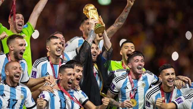 Laga Piala Dunia 2022 telah berakhir dengan kemenangan Argentina atas Prancis. Lionel Messi cs mengangkat dan mencium trofi Piala Dunia yang ternyata terbuat dari emas! Berapa ya harganya?