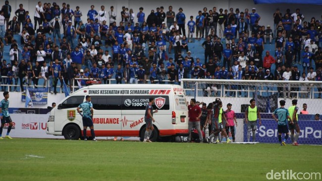 Beberapa pemain juga meminta tim medis segera masuk ke lapangan. Tak berselang lama tim medis datang bersama ambulans.