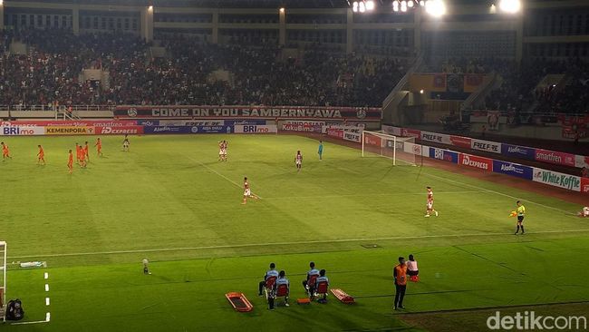Persis Solo berhasil unggul atas Borneo di babak pertama. Keduanya bertemu dalam pekan ketiga Liga 1 2023/2024 di Stadion Manahan Solo, Sabtu (15/7/2023). Laskar Sambernyawa sukses mencetak dua gol.