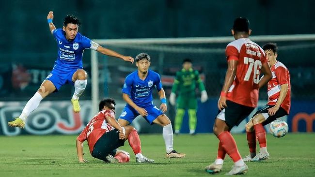 Skor kacamata menutup babak pertama laga Madura United melawan PSIS Semarang. Laga pekan keenam Liga 1 2023/2024 itu digelar di Stadion Gelora Bangkalan, Sabtu (5/8/2023).