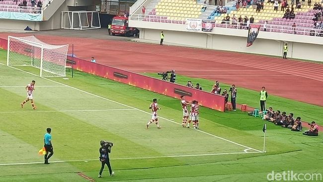 Gol! Stadion Manahan bergemuruh usai Persis mencetak gol kedua. Memanfaatkan umpan manja dari Althaf pada menit ke-43, Moussa dengan leluasa melepaskan tembakan yang merobek gawang Persik.