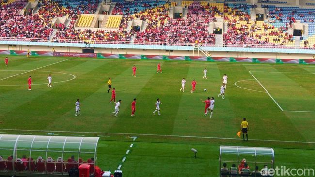 GOL! Indonesia berhasil memecah kebuntuan pada menit ke-45. Fandi yang memberikan umpan matang berhasil melewati bek Vietanam, bola diterima Gholy dan melakukan tembakan, saat berhadapan dengan kiper Vietnam. Skor 1-0 Garuda Muda unggul.