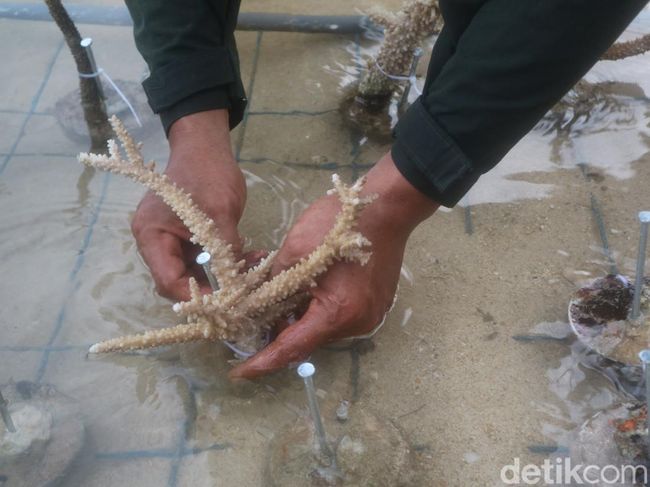"Mengapa, jenis lain bisa, karena dia lebih mudah dengan yang lain, seperti karang bunga, atau karang otak. Isinya 12 batang, metodenya paralon, semen sebagai sutrat karang tadi," ujar dia.