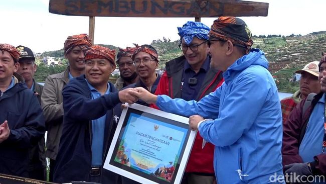 "Selamat kepada Desa Sembungan masuk 50 besar desa wisata terbaik," ujar Sandiaga usai memberikan penghargaan di Desa Sembungan, Minggu (3/7/2022).