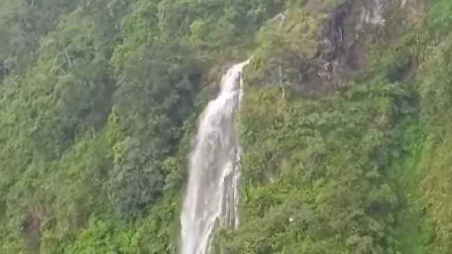 Air terjun itu dilihat wisatawan pada Minggu (1/1) sekitar pukul 16.00 WIB. Dari kejauhan air terjun itu terlihat menyerupai garis putih seperti tower.
