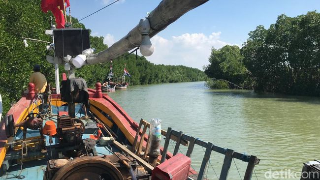 Sungai yang membelah Kota Tiongkok Kecil di Rembang ini, bermuara di Desa Dasun dan DesaGedongmulyo, KecamatanLasem. detikJateng berkesempatan berkunjung ke muara Sungai Lasem tepatnya berada di Desa Dasun Lasem, Minggu (9/7/2023). Tak jauh dari muara sungai terdapat Objek Wisata Pantai Dasun.