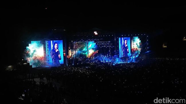 Puluhan ribu penonton yang telah memadati Stadion Manahan bersorak saat Dewa 19 membawakan lagu tersebut.