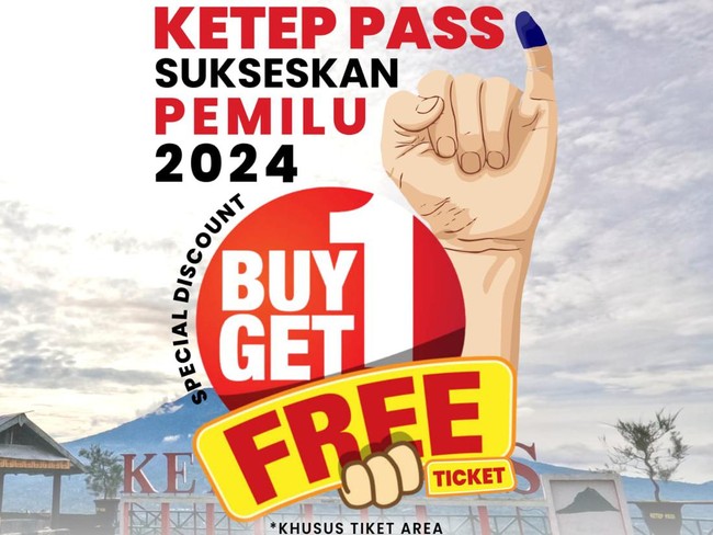 Objek Wisata Ketep Pass Magelang memberikan diskon khusus bagi pengunjung saat hari pencoblosan Pemilu 2024. Pengunjung yang usai mencoblos akan diberi diskon 'buy one get one free access'.